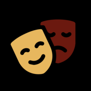 Imagen animada de una máscara cara sonriente adelante, y una máscara triste detrás